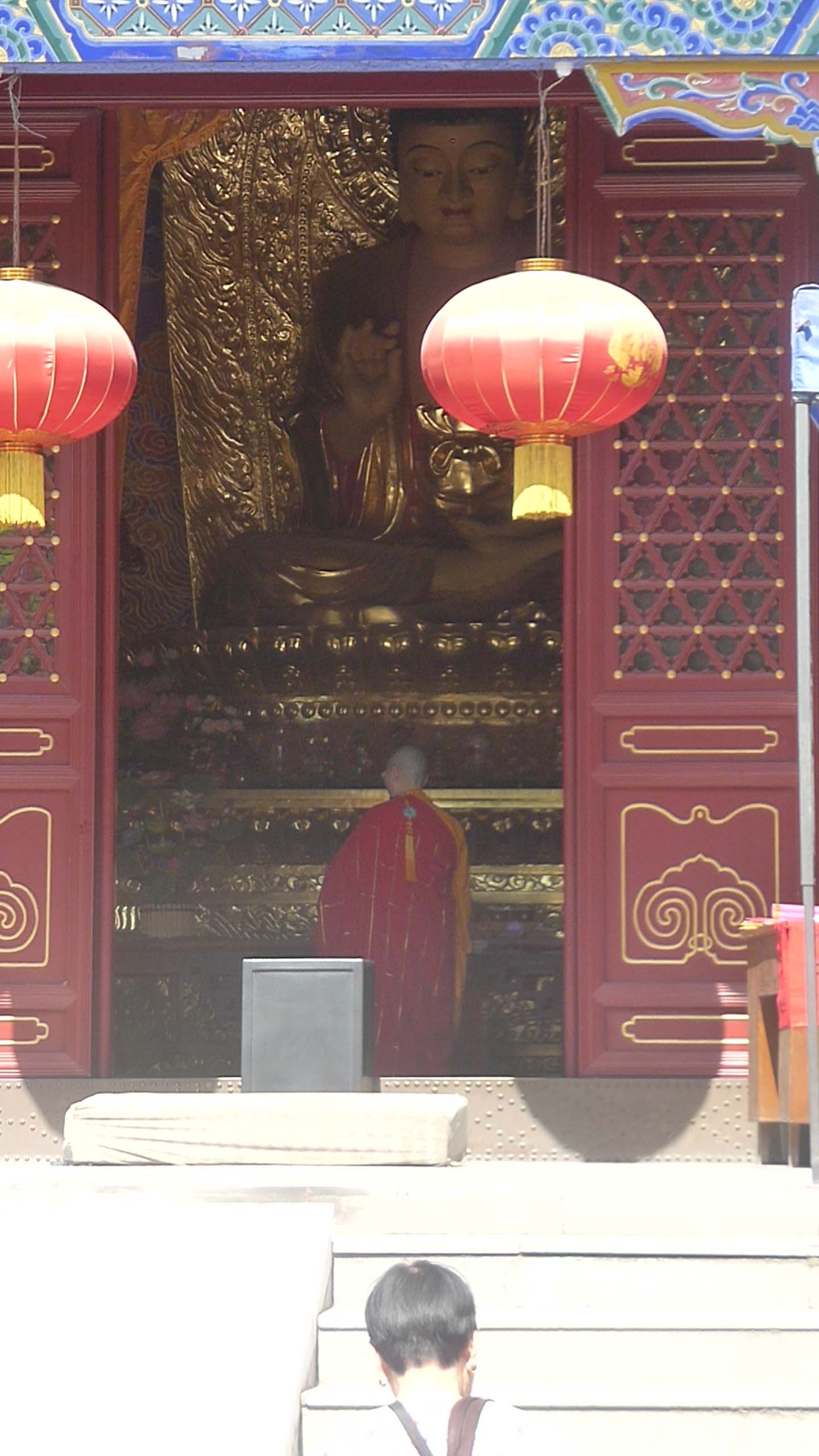 Photo- Lumière blanche, le bouddha, le moine et la croyante.