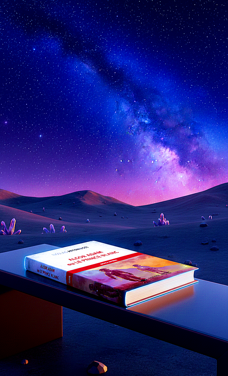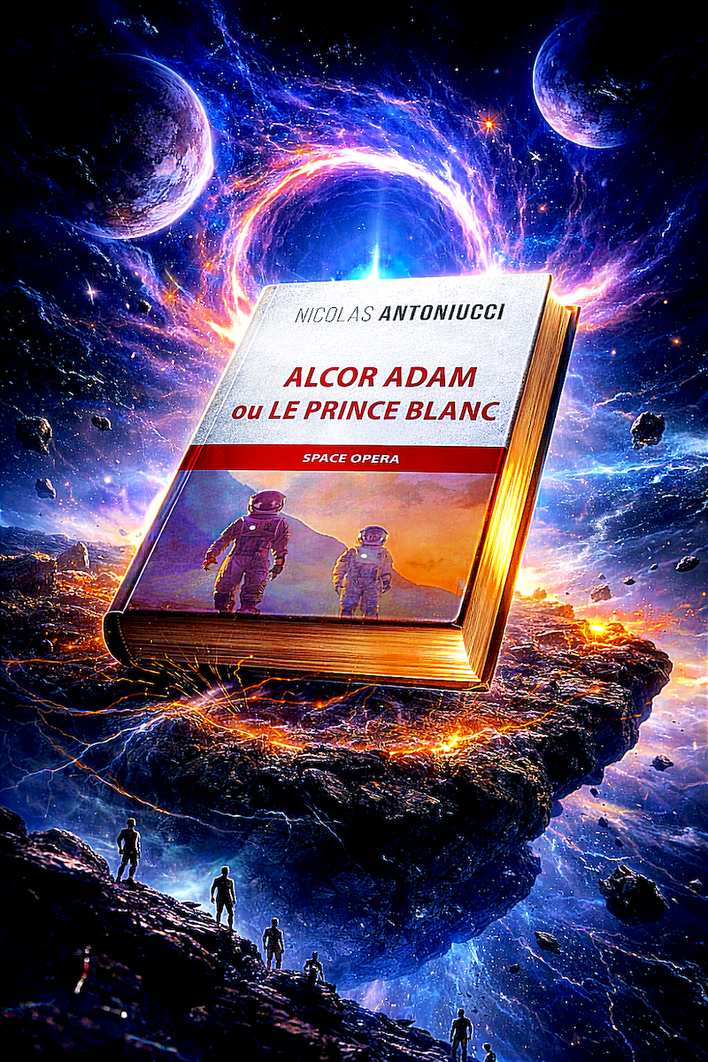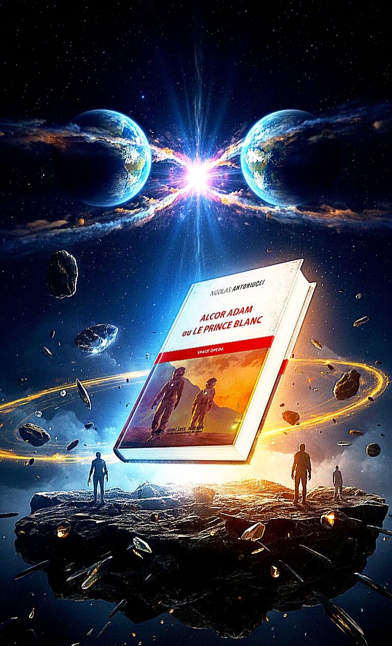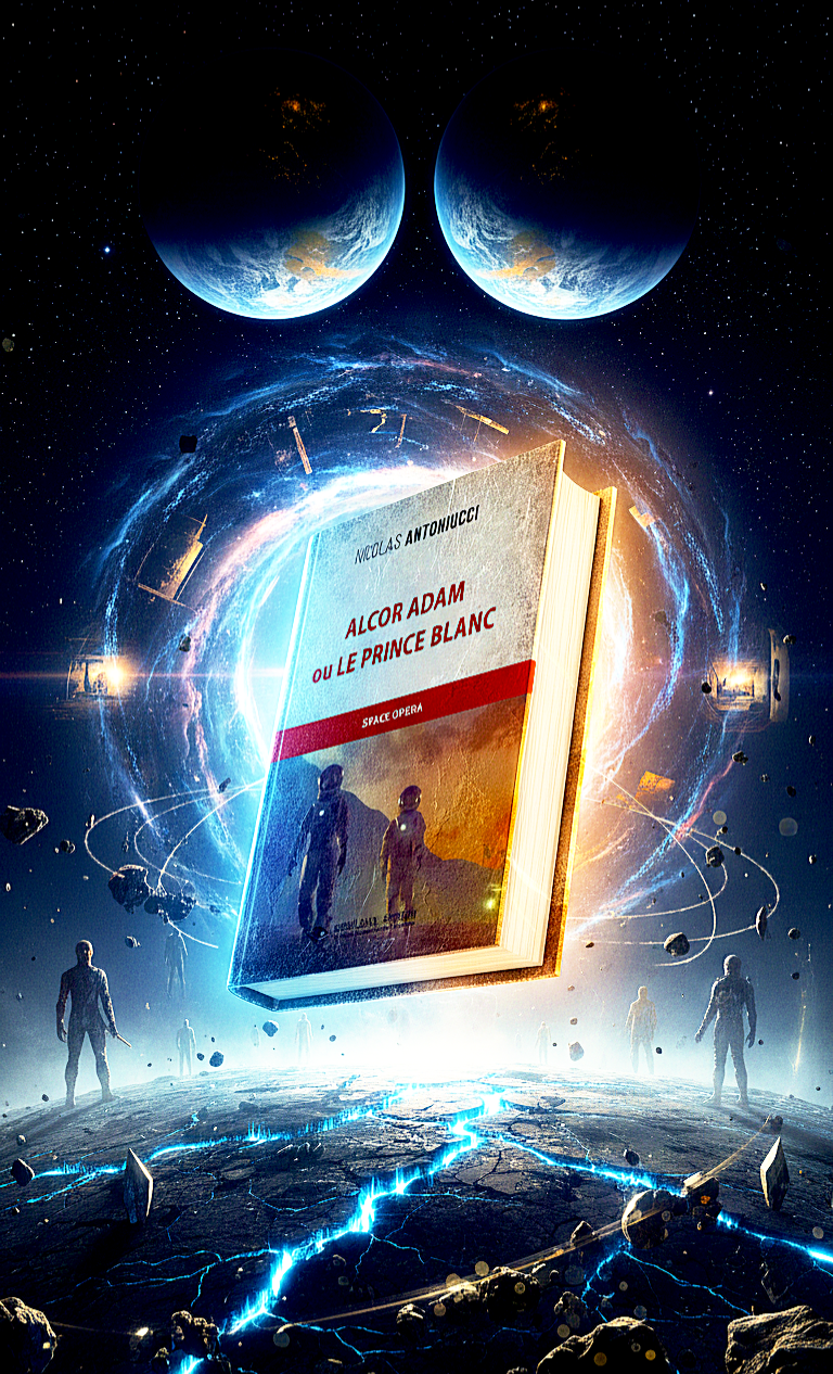 Dans le cadre de mes 20 années d’écriture, voici quelques visuels faits, comme précédemment, par l’équipe de Félicia mon livre Alcor Adam ou le Prince blanc, publié en 2016. C’est un space opéra qui est suivi d’une nouvelle, Le miroir brisé, un voyage dans le temps.